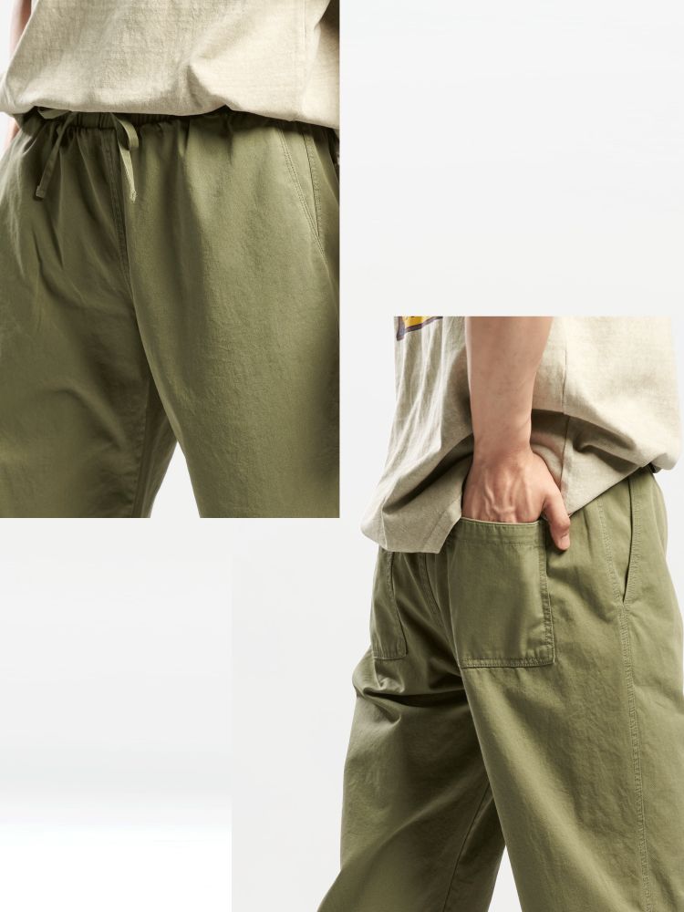 허리 디테일: 편안한 착용감을 위한 허리 밴딩 처리 및 제원단 스트링으로 사이즈 조절 가능